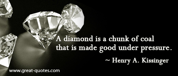 “Deep in the center of the earth, a diamond is formed. Though many will admire its beauty and usefulness, when its formation is complete, none views the process by which it is formed. It is hidden, unseen, in the darkness. So is the work of God in the heart of man.” -Diane Dew